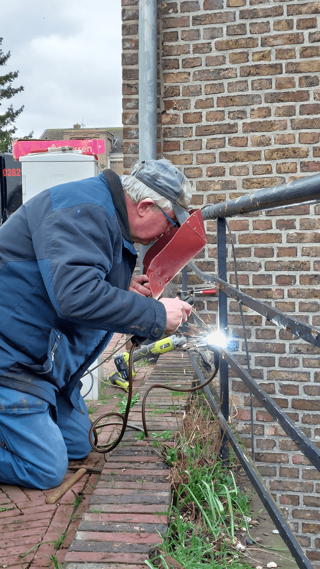 Wie gerufen kam Theo Thünnissen Mitte Februar des Weges und erklärte sich spontan bereit eine gebrochene Scheißnaht am originalen Brüstungsgeländer zum tiefen Garten zu reparieren.