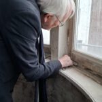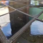 Bezüglich der Fenster von Haus Haan geht es – langsam aber sicher – voran. Dazu wurden in Absprache zwei Sets Proben aus den Fensterrahmen entnommen, um diese durch das LVR – Amt für Denkmalpflege im Rheinland – befunden zu lassen. Grund hierfür war der Wunsch die bauzeitliche Farbgebung der Fenster (außen wie innen) – möglichst zweifelfrei – zu klären. Eine erste Beprobung hatte die Annahme massiv blauer Fenster ergeben. Anfang Herbst hatte Herr Prof. Dr. Friedrich Schmuck seine Bereitschaft kommuniziert die Sanierung von Haus Haan als ausgewiesener Experte für Farbgestaltung zu unterstützen. Ende Oktober hat er sich einen ersten persönlichen Eindruck für die Erarbeitung seiner Farbkonzepte vor Ort verschaffen können. Last but not least ermöglichte glücklicher Zufall die Bergung von zwei der vier Bleiverglasungen der zum Abriss stehenden Leichenhalle im Stadtteil Appeldorn. Die stehenden Rauten dieser Fenster entsprechen der einzigen nicht mehr im Original vorhandenen Bleiverglasung des Küchenfensters von Haus Haan. Sie wurden zur Fachfirma Hein Derix GmbH & Ko. KG in Kevelaer verbracht, wo sie nun – zusammen mit den sieben Originalverglasungen – saniert werden.